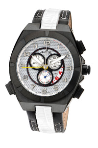Porsamo Bleu Ibiza Luxury Chronograph Men's Watch, Genuine Leather Band, Black, White 123AIBL