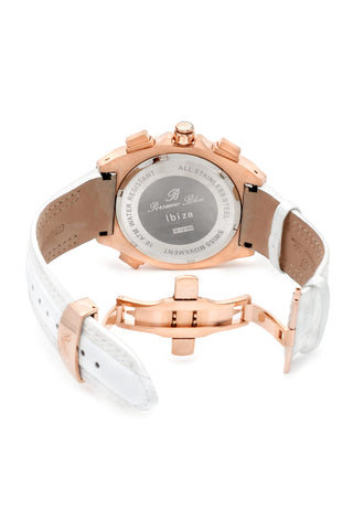 Porsamo Bleu Ibiza Luxury Chronograph Men's Watch, Genuine Leather Band, Rose, White 123BIBL