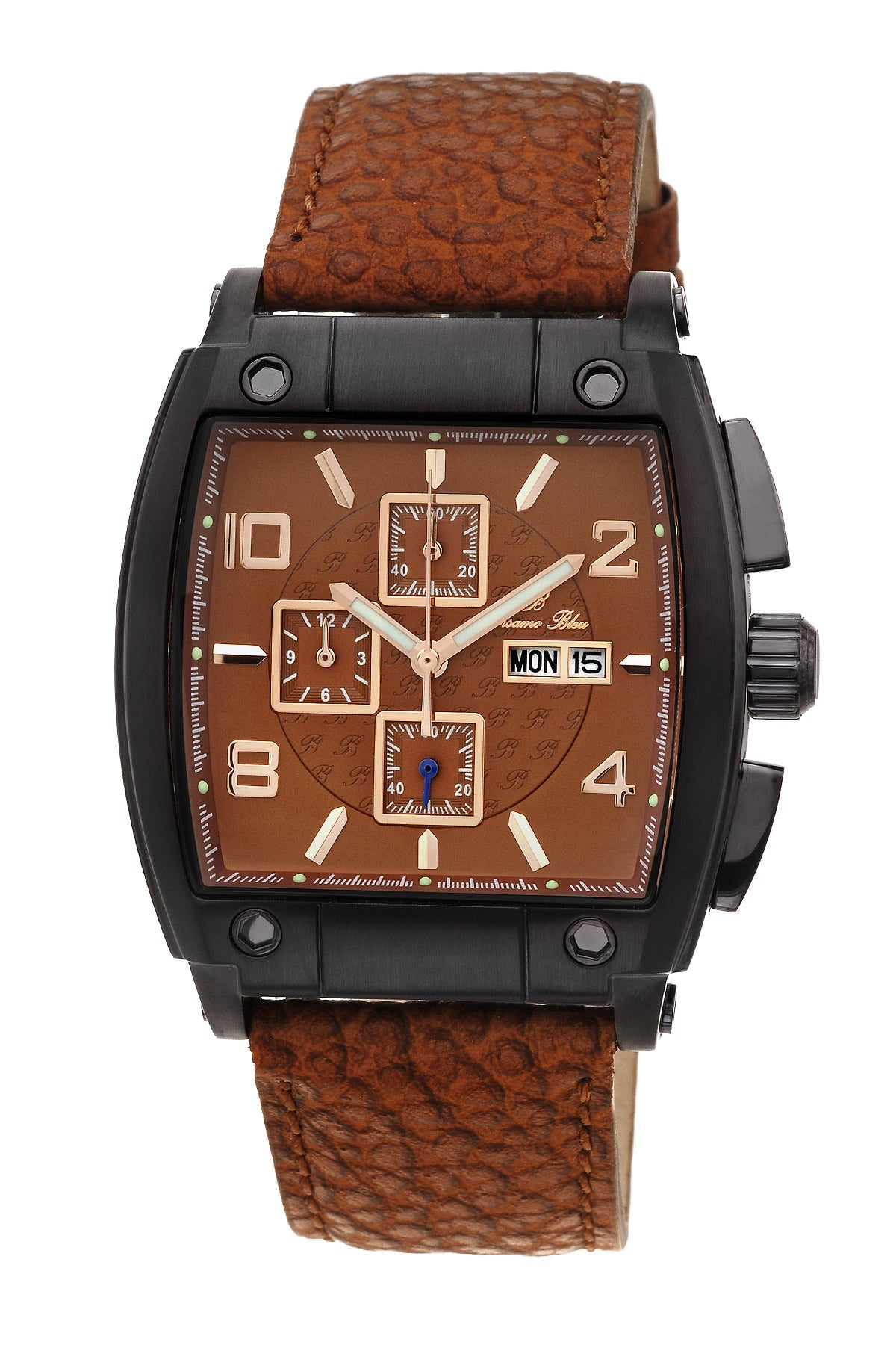 Porsamo Bleu London Luxury Chronograph Men's Watch, Genuine Leather Band, Black, Brown 142DLOL