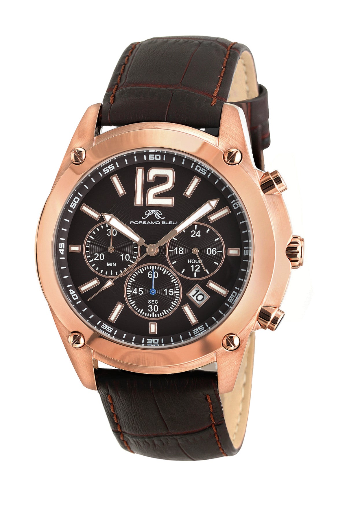 Porsamo Bleu Nathan Luxury Chronograph Men's Watch, Genuine Leather Band, Rose, Brown 641CNAL