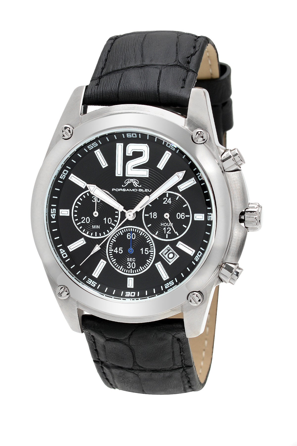 Porsamo Bleu Nathan Luxury Chronograph Men's Watch, Genuine Leather Band, Silver, Black 642ANAL