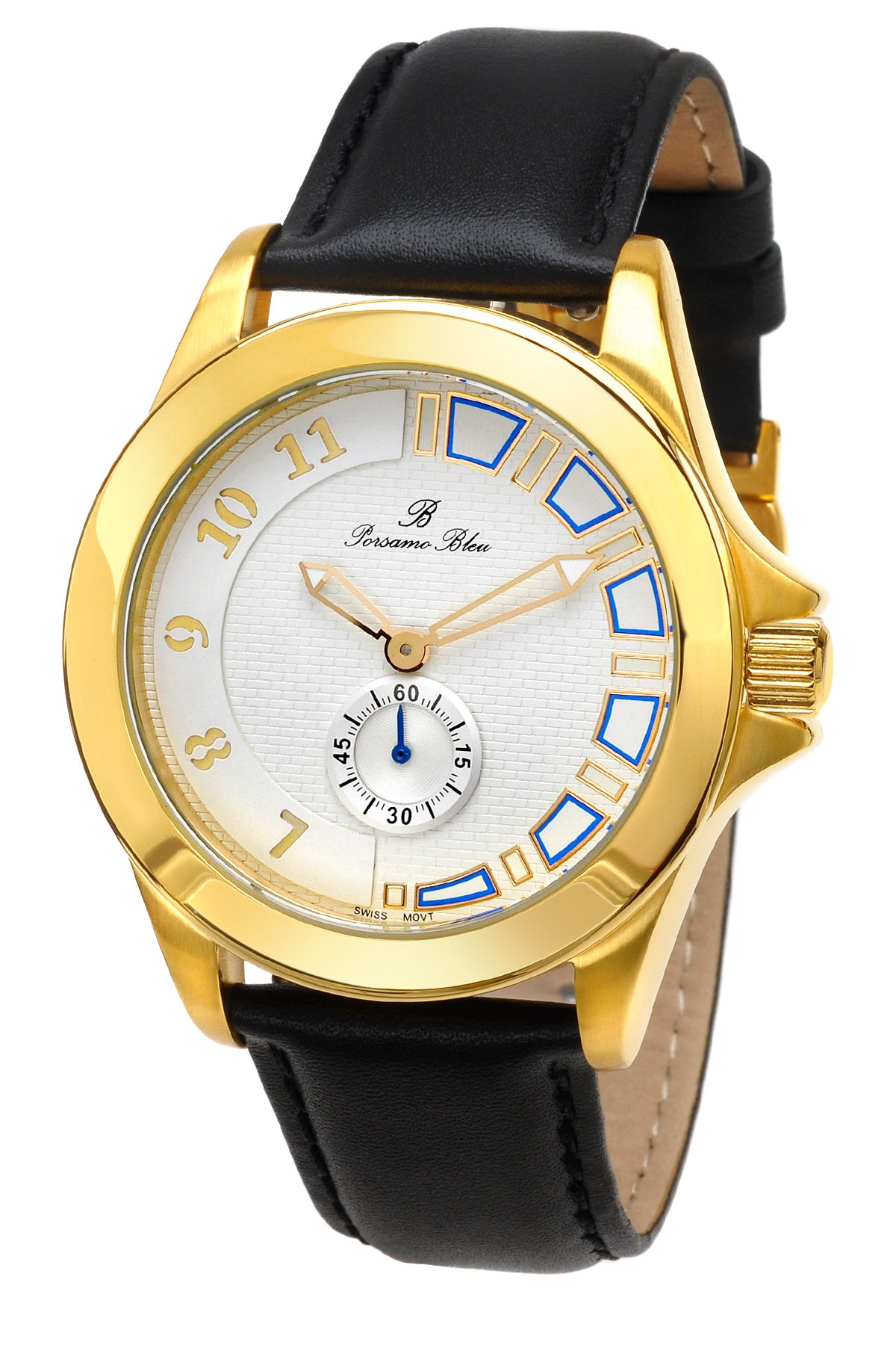 Porsamo Bleu Soho Luxury Men's Dress Watch With Genuine Leather Band Gold Tone And Black 042CSOL