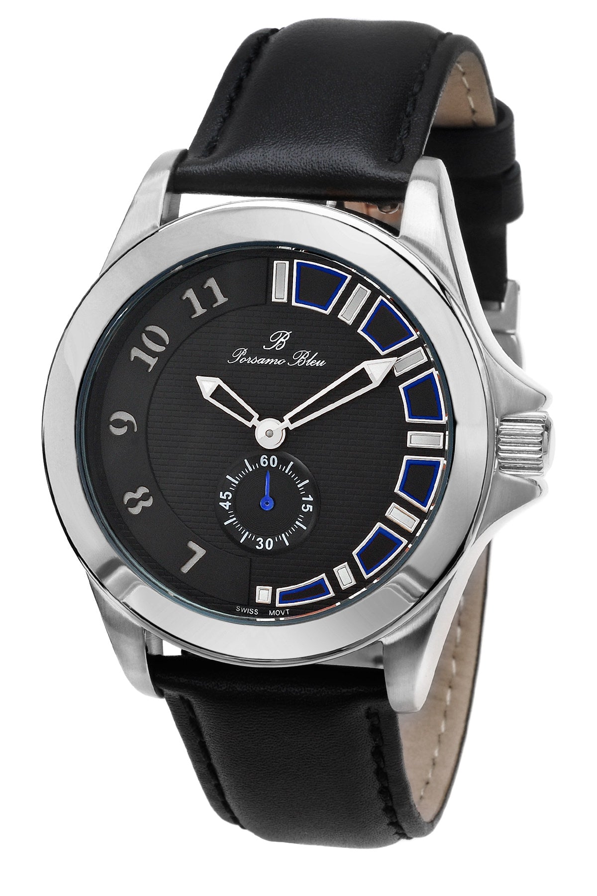 Porsamo Bleu Soho Luxury Men's Dress Watch With Genuine Leather Band Silver Tone And Black 041CSOL