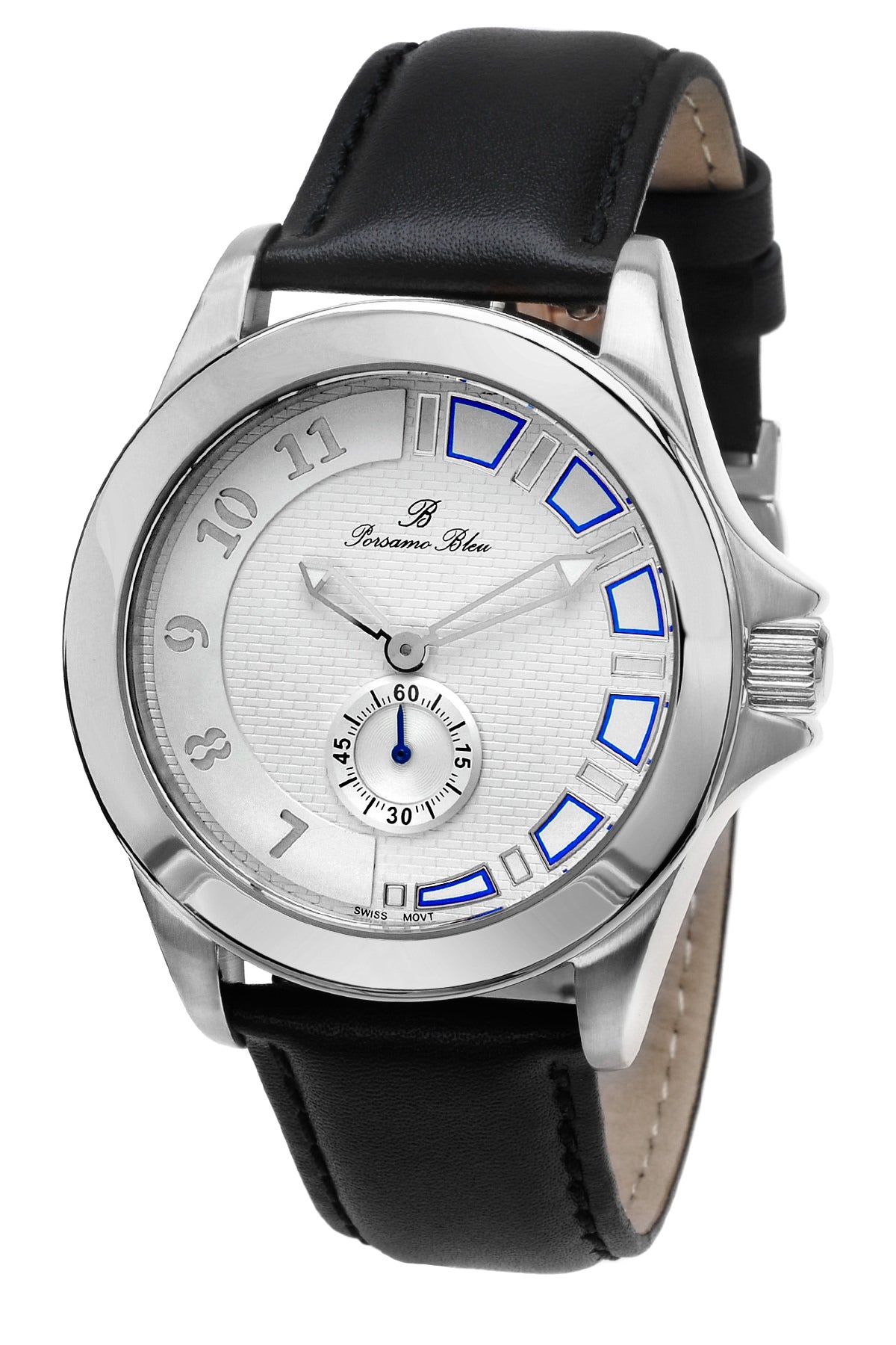 Porsamo Bleu Soho Luxury Men's Dress Watch With Genuine Leather Band Silver Tone And Black 042ASOL