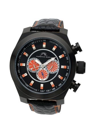Porsamo Bleu Sydney G Luxury Men's Watch, Genuine Leather Band, Black 231ASGL
