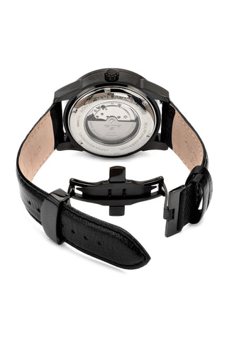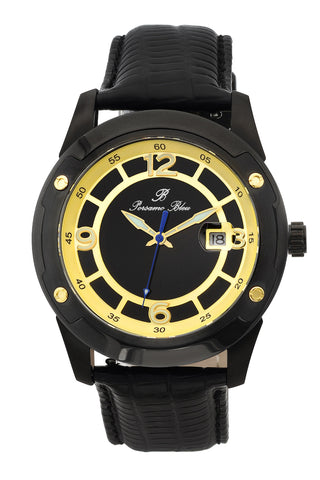 Porsamo Bleu Tokyo Luxury Automatic Men's Watch, Genuine Leather Band, Gold, Black 175ATOL