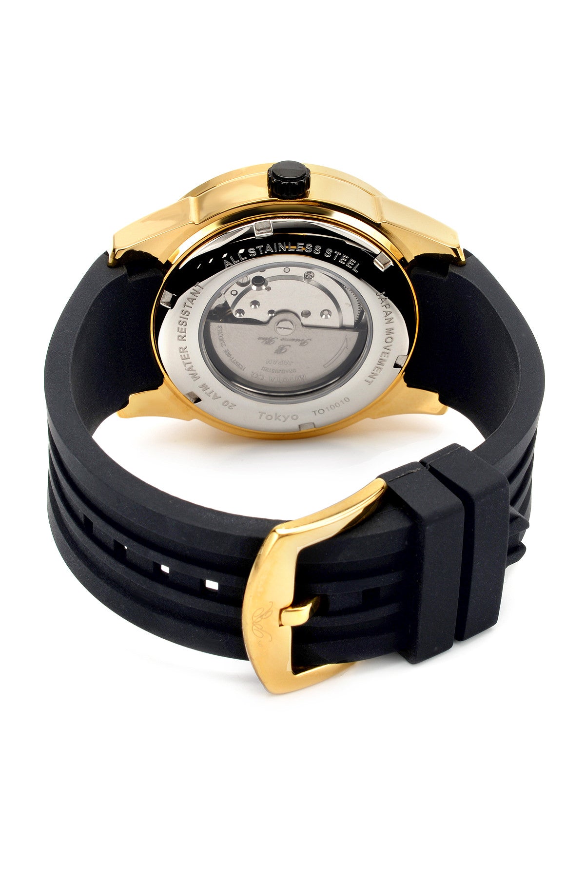 Porsamo Bleu Tokyo Luxury Automatic Men's Watch, Silicone Strap, Gold, Black 171BTOR