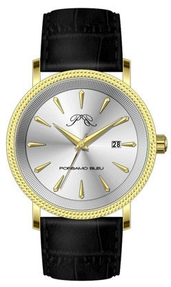 Porsamo Bleu Veritas2 Luxury Men's Watch Genuine Leather Band, Gold-Tone, Black, 1362DVEL