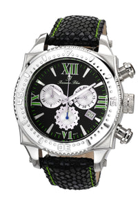 Elegant and modern, the MILAN M features a double‑layered in black with silver‑tone and green elements, housed in a silver‑tone round stainless steel case. Paired with a genuine leather strap, protected by a sapphire‑coated crystal, chronograph subdials track minutes and seconds a date window keeps you on track a 12‑hour counter adds versatility—a statement for those who appreciate mechanical beauty.