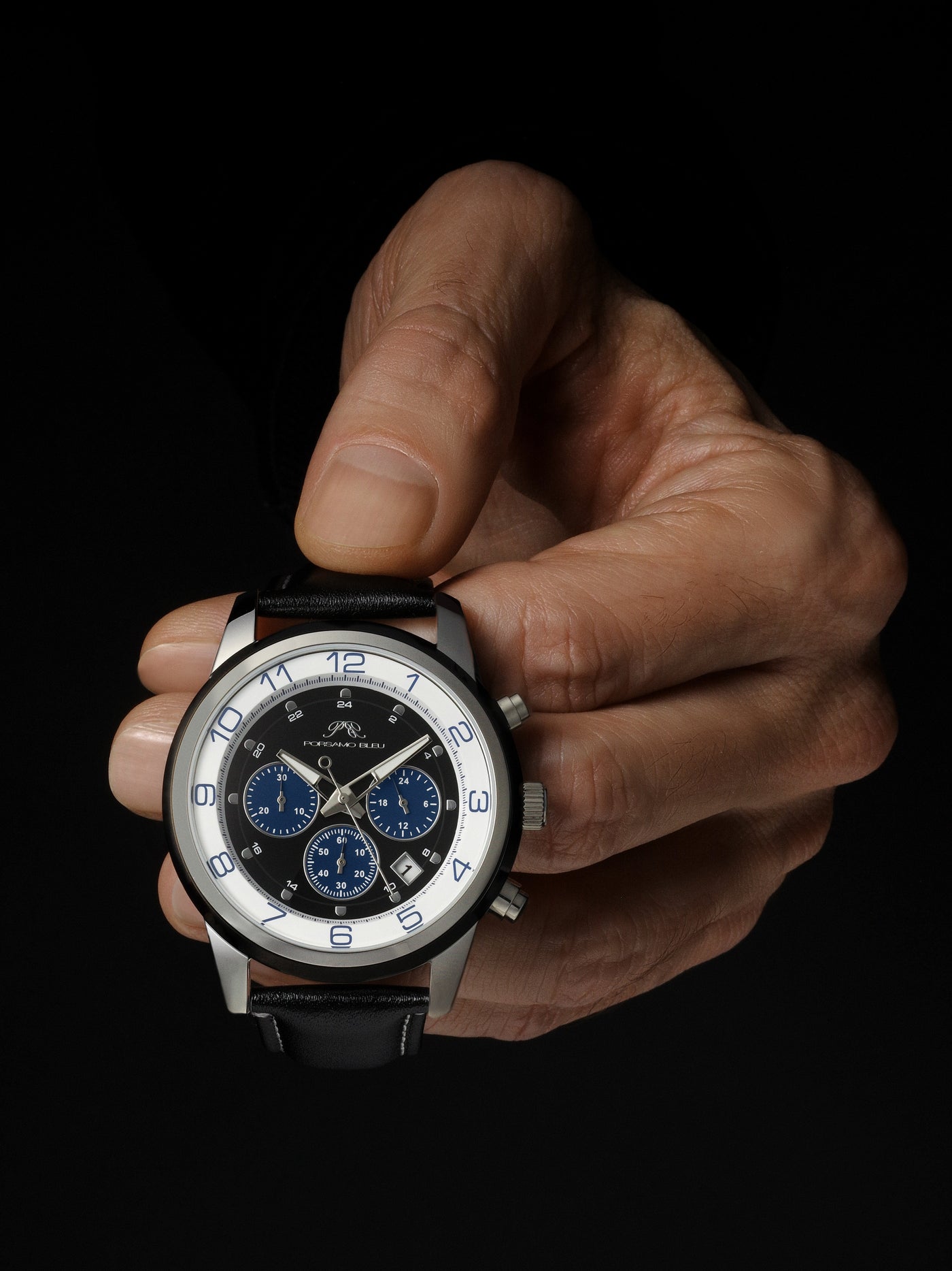Porsamo Bleu Arthur Luxury Chronograph Men's Genuine Leather Band Watch, Silver, Black, Blue 1091GARL