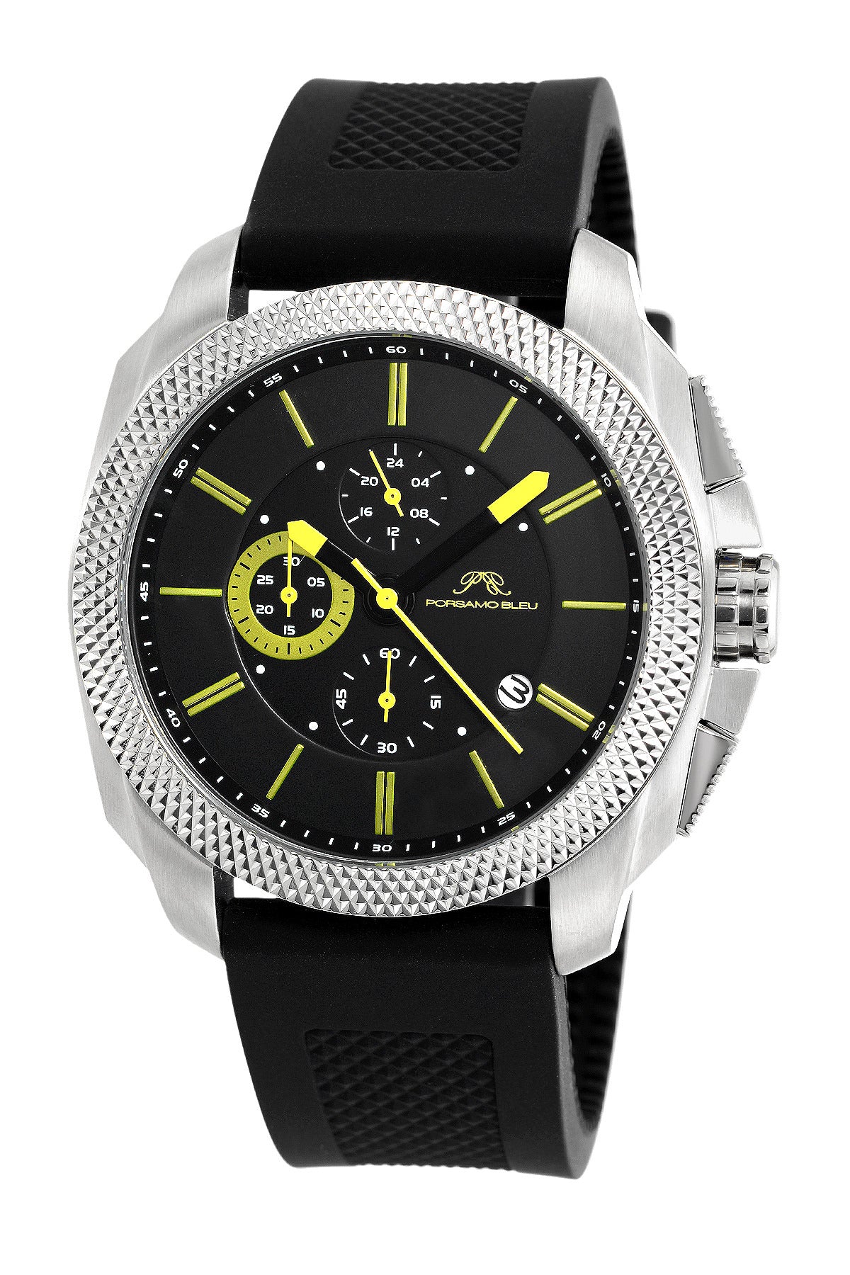 Porsamo Bleu Niccolo Luxury Chronograph Men's Watch, Silicone Strap, Silver, Black, Green 332ANIR
