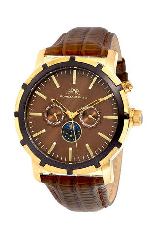 Porsamo Bleu NYC Moon Luxury Men's Watch, Genuine Leather Band, Gold, Brown 057CNYL