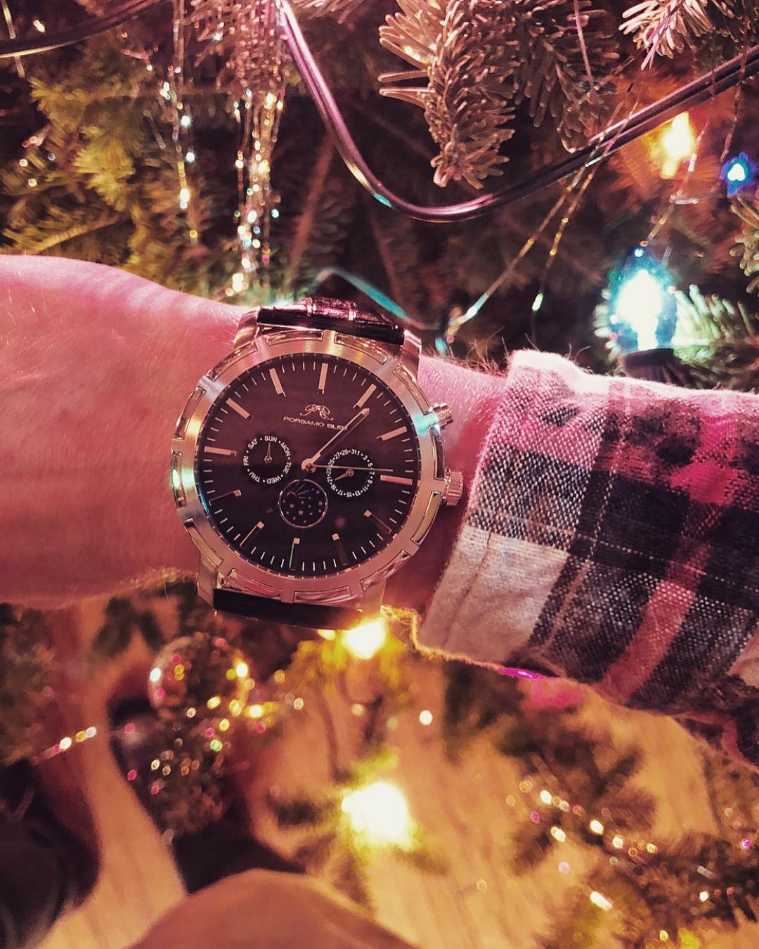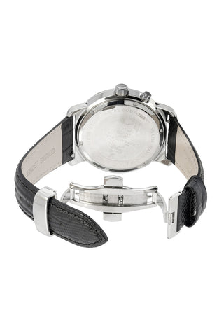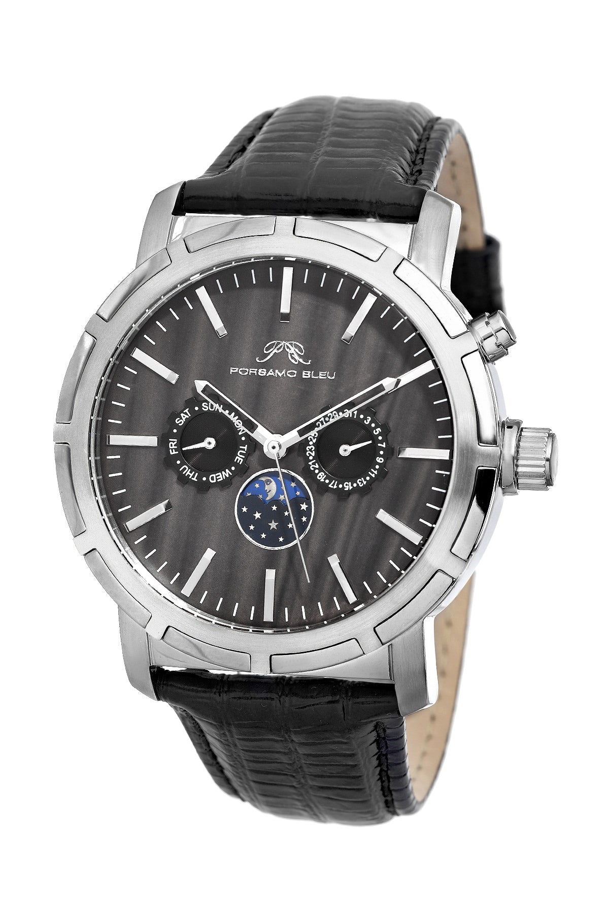 Porsamo Bleu NYC Moon Luxury Men's Watch, Genuine Leather Band, Silver, Black 057ANYL