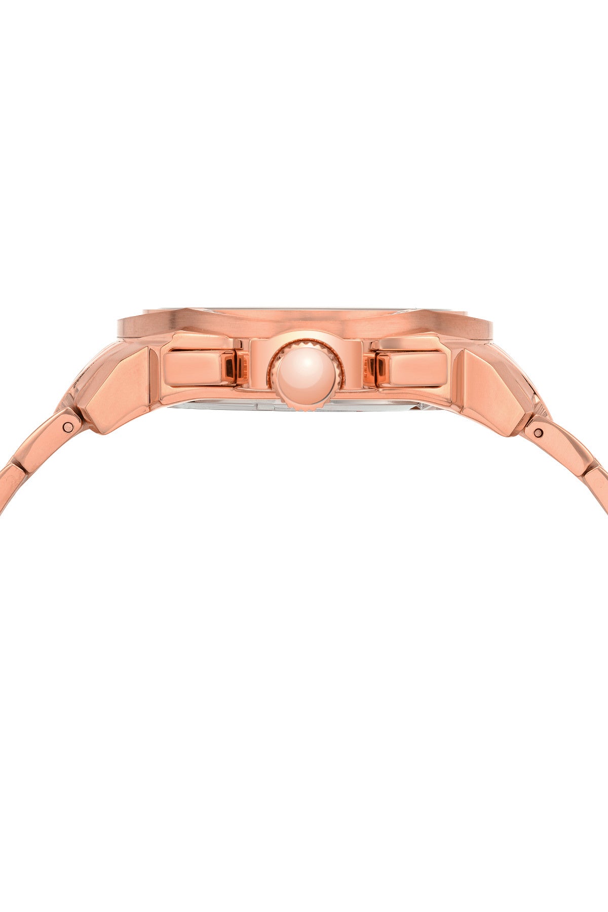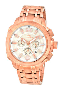 Elegant and bold, the Olivier features a distinctive dial in white with rose‑toned elements, housed in a rose‑toned round stainless steel case. Paired with a stainless steel bracelet, protected by a sapphire‑coated crystal, chronograph subdials track minutes and seconds a date window keeps you on track—a dynamic blend of art and engineering.