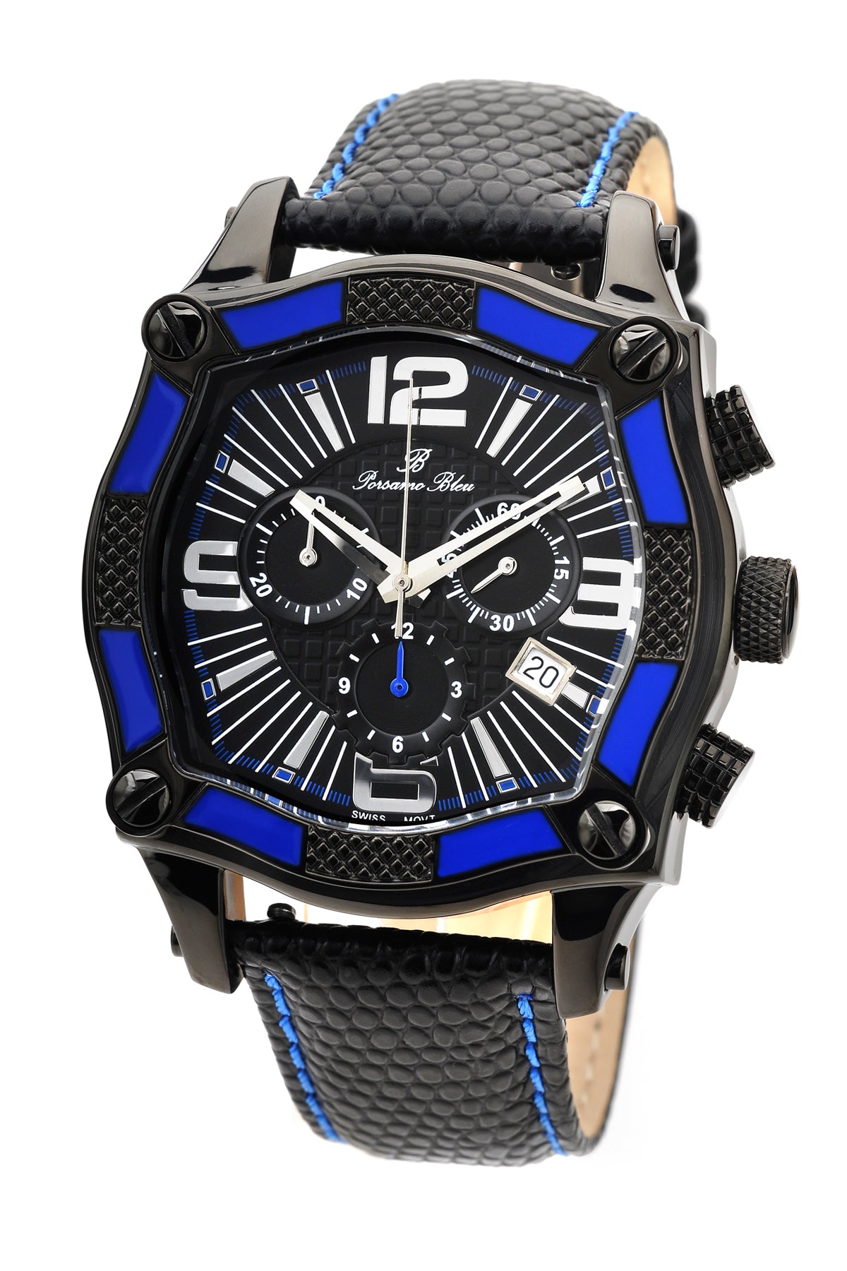 Porsamo Bleu Sao Paulo Chronograph Men's Watch, Genuine Leather Band, Black, Blue 021ASPL