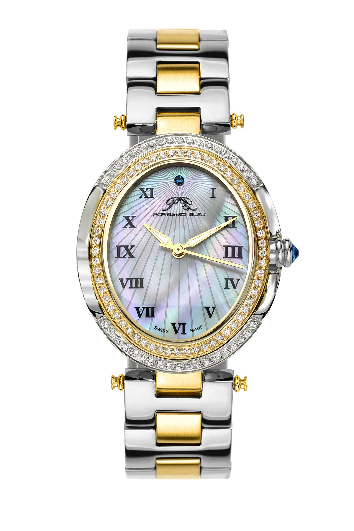 Porsamo Bleu South Sea Oval Crystal Luxury Women's Stainless Steel Watch, Silver, Gold 106FSSO