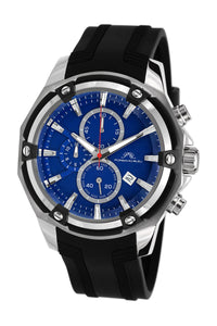 Porsamo Bleu Stavros Luxury Chronograph Men's Watch, Silicone Strap, Silver, Black, Blue 483ASTR
