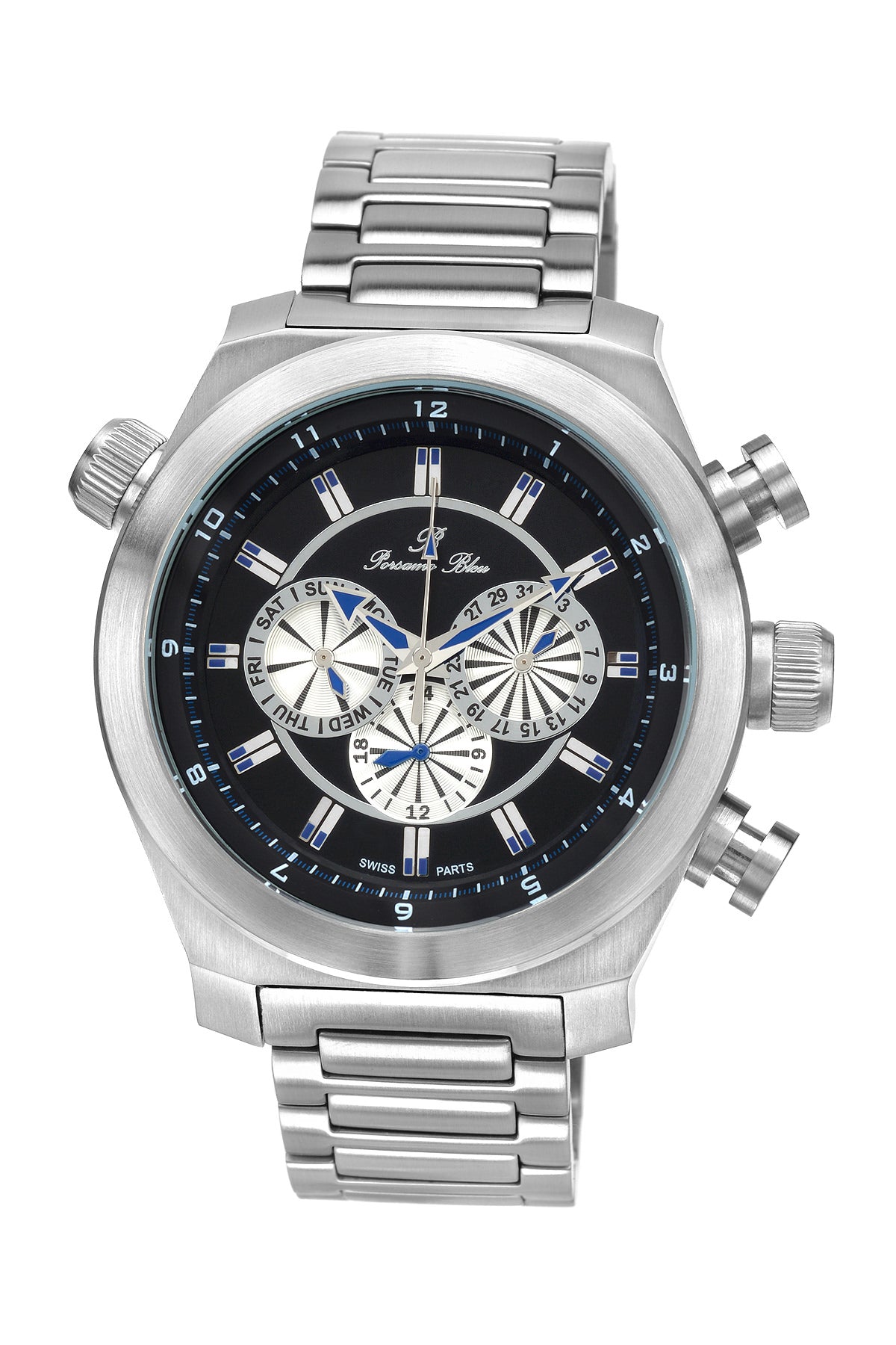 Porsamo Bleu Sydney Luxury Men's Stainless Steel Watch, Silver, Black 163ASYS