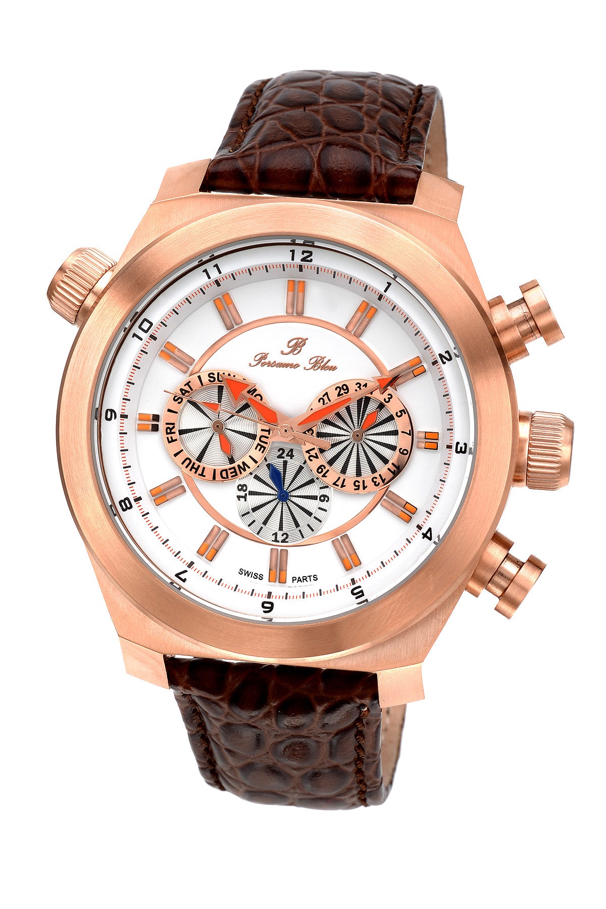 Porsamo Bleu Sydney Luxury Men's Watch, Genuine Leather Band, Rose, Brown 161CSYL