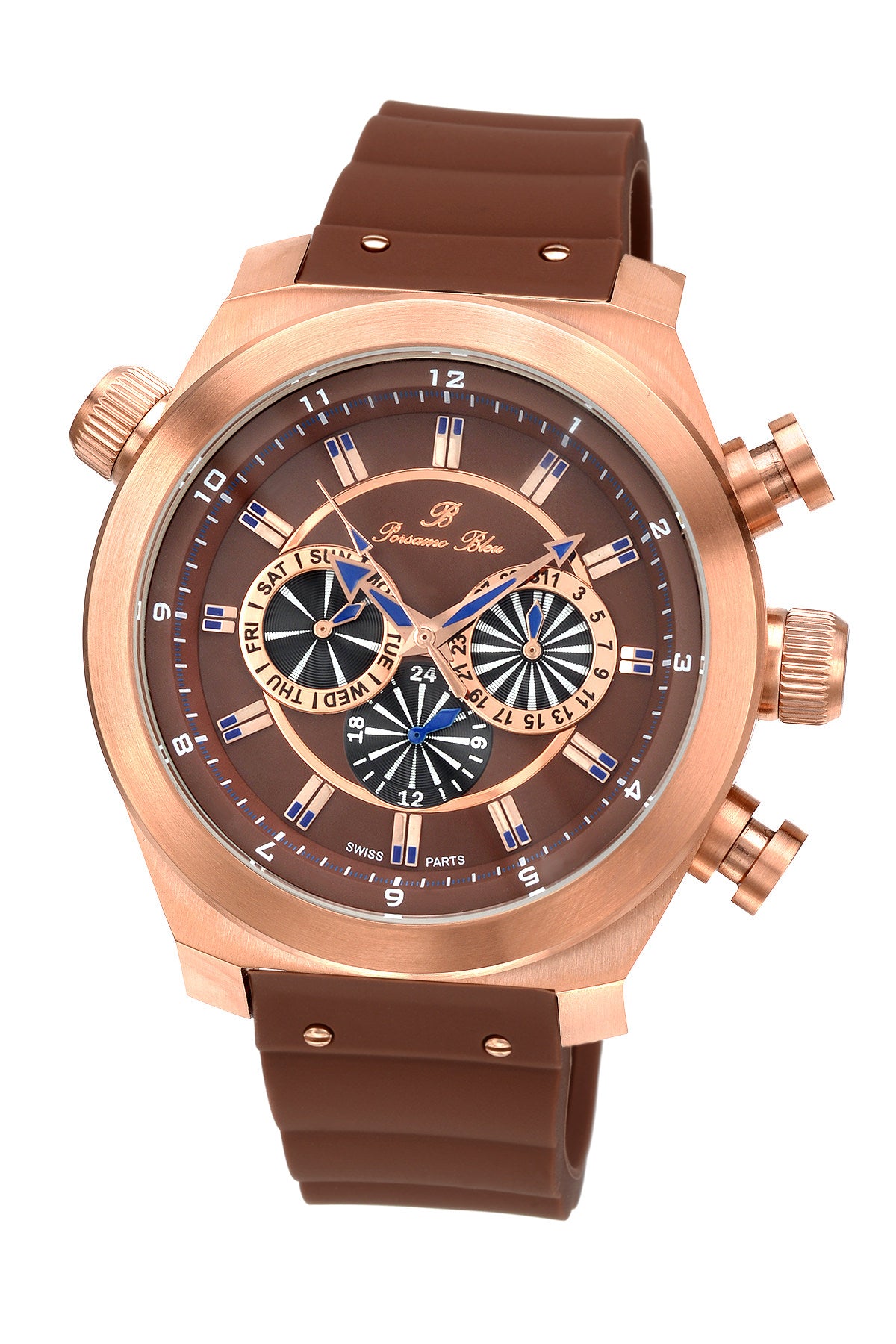 Porsamo Bleu Sydney Luxury Men's Watch, Silicone Strap, Rose, Brown 165ASYR