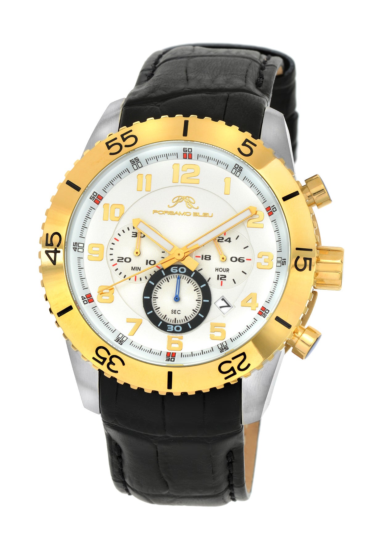 Porsamo Bleu Tristan Luxury Chronograph Men's Watch, Genuine Leather Band, Gold, Silver, Black 591CTRL