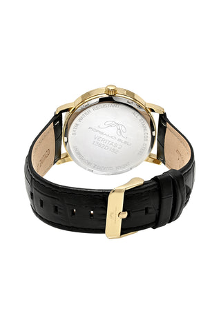 Porsamo Bleu Veritas2 Luxury Men's Watch Genuine Leather Band, Gold-Tone, Black, 1362DVEL