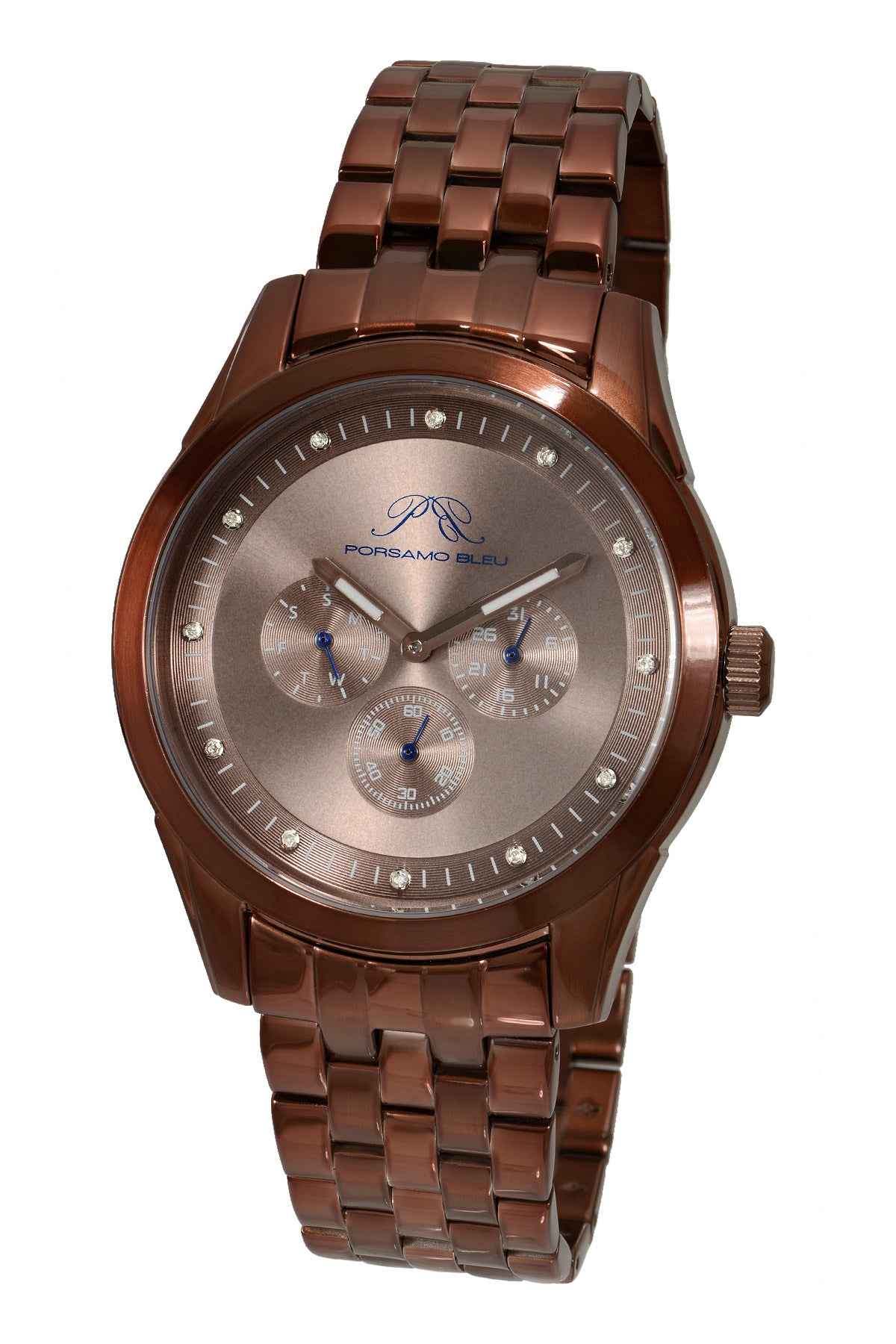 Porsamo Bleu Vince Luxury Diamond Men's Stainless Steel Watch, Brown 751BVIS