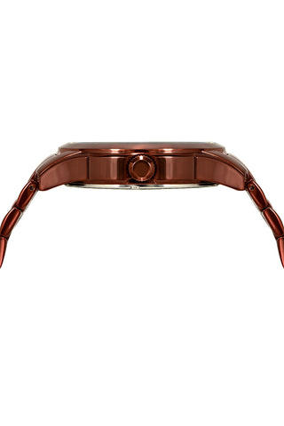 Elegant and sophisticated, the Vince features a sunray dial in brown, housed in a round stainless steel case. Paired with a stainless steel bracelet, protected by a sapphire‑coated crystal, accented with sparkling diamonds, day and date windows keep you on schedule—a classic design with a touch of modern romance.