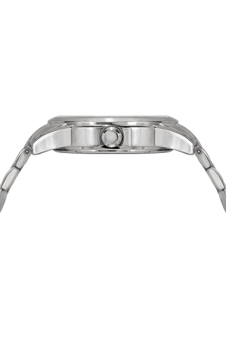 Elegant and sophisticated, the Vince features a sunray dial in silver‑tone, housed in a silver‑tone round stainless steel case. Paired with a stainless steel bracelet, protected by a sapphire‑coated crystal, accented with sparkling diamonds, day and date windows keep you on schedule—a classic design with a touch of modern romance.