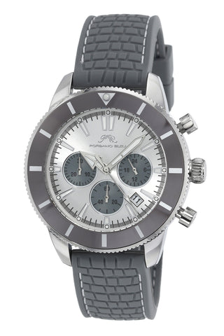 Porsamo Bleu Brandon Luxury Chronograph Men's Silicone Strap Watch, Silver, Grey 1013CBRR