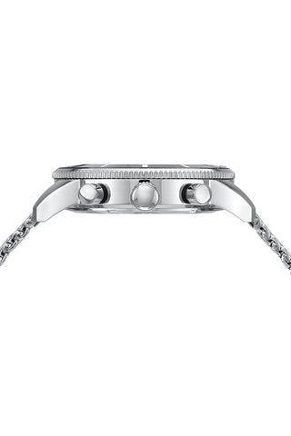 Elegant and graceful, the Brandon features a sunray dial in black with silver subdials, housed in a silver‑tone round stainless steel case. Paired with a stainless steel bracelet, protected by a sapphire‑coated crystal, chronograph subdials track minutes and seconds a date window keeps you on track—a dynamic blend of art and engineering.