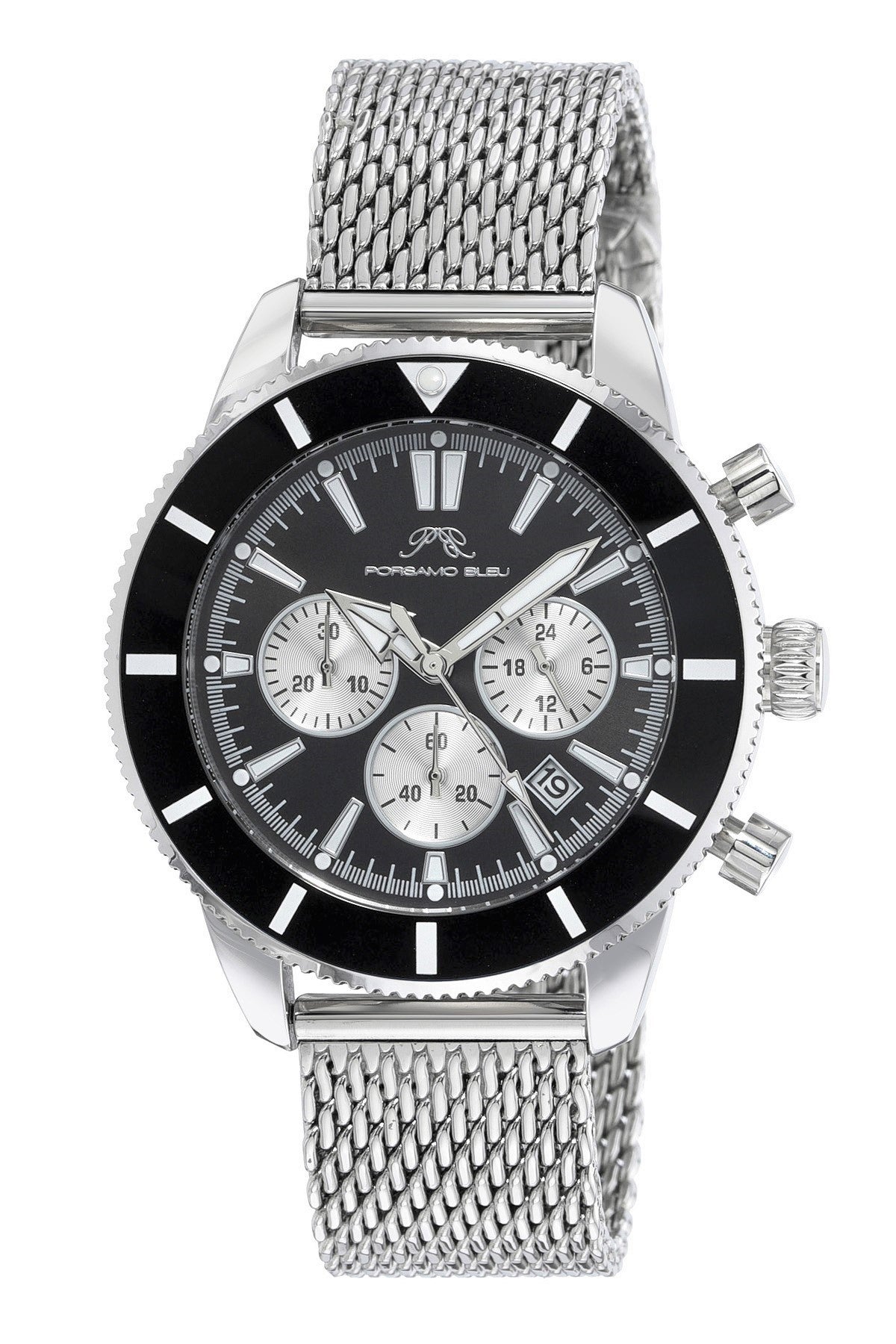 Porsamo Bleu Brandon Luxury Chronograph Men's Stainless Steel Watch, Silver, Black 1011ABRS