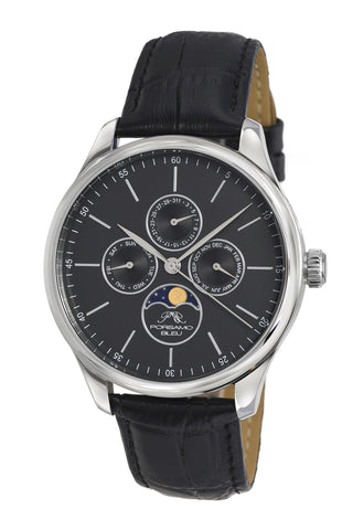 Porsamo Bleu Jonathan Luxury Men's Watch, Genuine Leather Band, Black 911BJOL