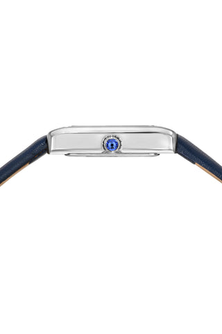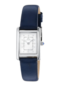 Porsamo Bleu Karolina Luxury Diamond Rectangular Women's Genuine Leather Band Watch, Silver, Blue 1081BKAL