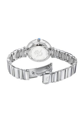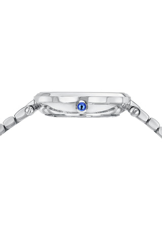 Elegant and timeless, the Lilian features a distinctive dial in silver, housed in a silver‑tone round stainless steel case. Paired with a stainless steel bracelet, protected by a sapphire‑coated crystal, accented with radiant topaz—a timeless piece that balances style and luxury.