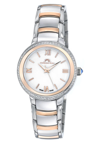 Porsamo Bleu Luna Luxury Topaz Women's Stainless Steel Watch, Two-Tone, White Enamel Dial 1181DLUS