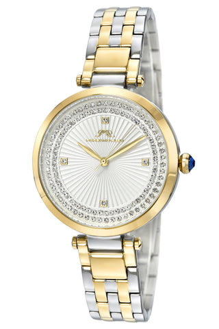 Porsamo Bleu Natalie Luxury Crystal Women's Stainless Steel Watch, With White Guilloche Dial, Two-Tone, 1251DNAS