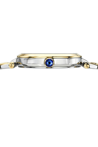 Elegant and modern, the Natalie features a guilloché dial in white, housed in a two‑tone round stainless steel case. Paired with a stainless steel bracelet, protected by a sapphire‑coated crystal—a timeless piece that balances style and luxury.