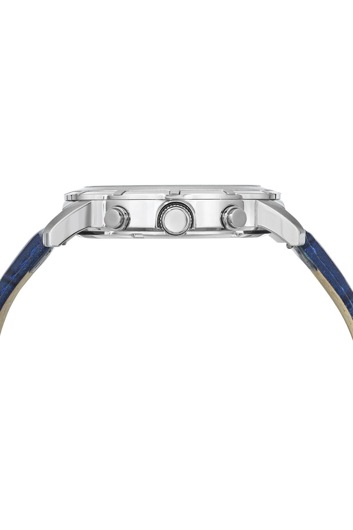 Elegant and striking, the NYC Chrono features a distinctive dial in blue, housed in a silver‑tone round stainless steel case. Paired with a blue genuine leather strap, protected by a sapphire‑coated crystal—a timeless piece that balances style and luxury.