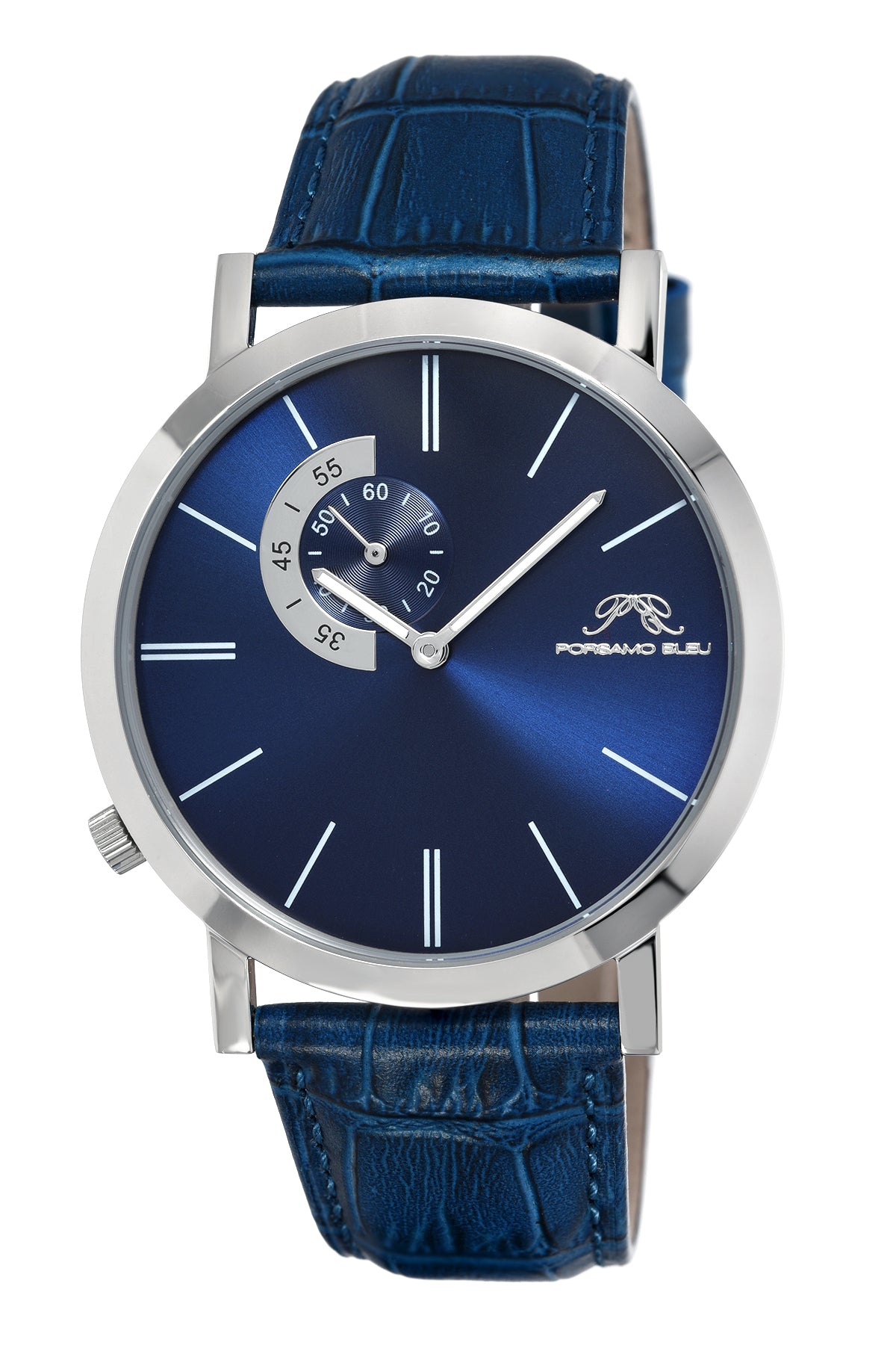 Porsamo Bleu Parker Luxury Men's Watch, Genuine Leather Band, Silver, Blue 832BPAL