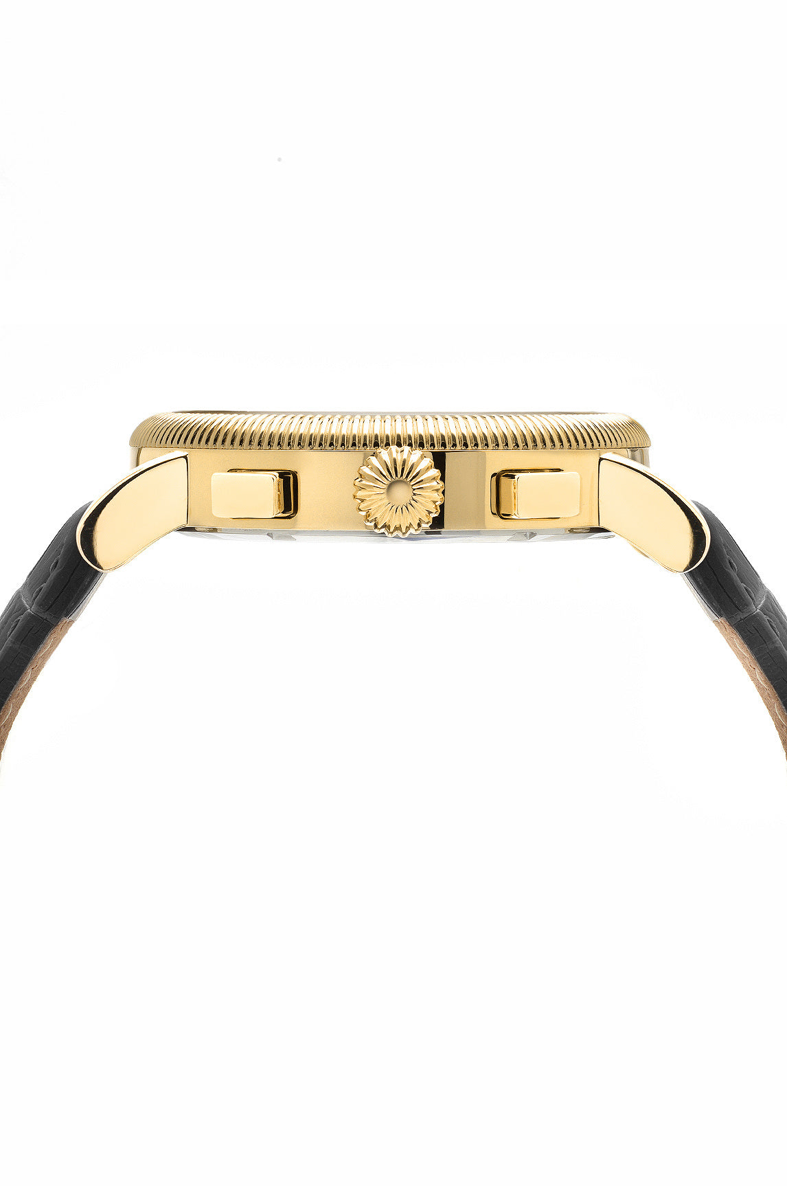 Elegant and modern, the Phileas features a distinctive dial in black, housed in a gold‑tone round stainless steel case. Paired with a black genuine leather strap, protected by a sapphire‑coated crystal, chronograph subdials track minutes and seconds a date window keeps you on track—a dynamic blend of art and engineering.