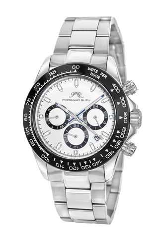 Porsamo Bleu Preston Luxury Multifunction Men's Stainless Steel Watch, Silver, Black, White 1031BPRS