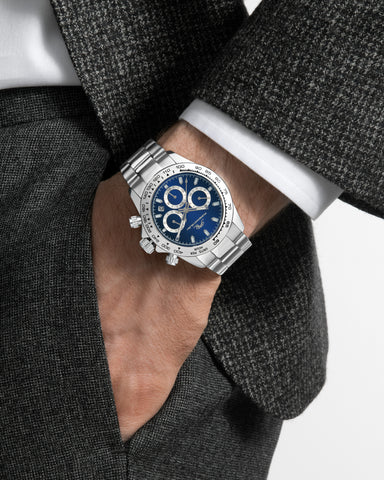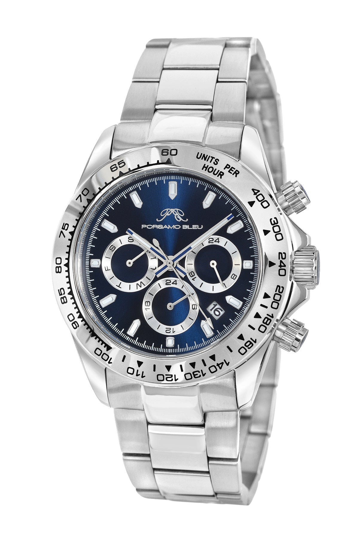 Porsamo Bleu Preston Luxury Multifunction Men's Stainless Steel Watch, Silver, Blue 1033APRS
