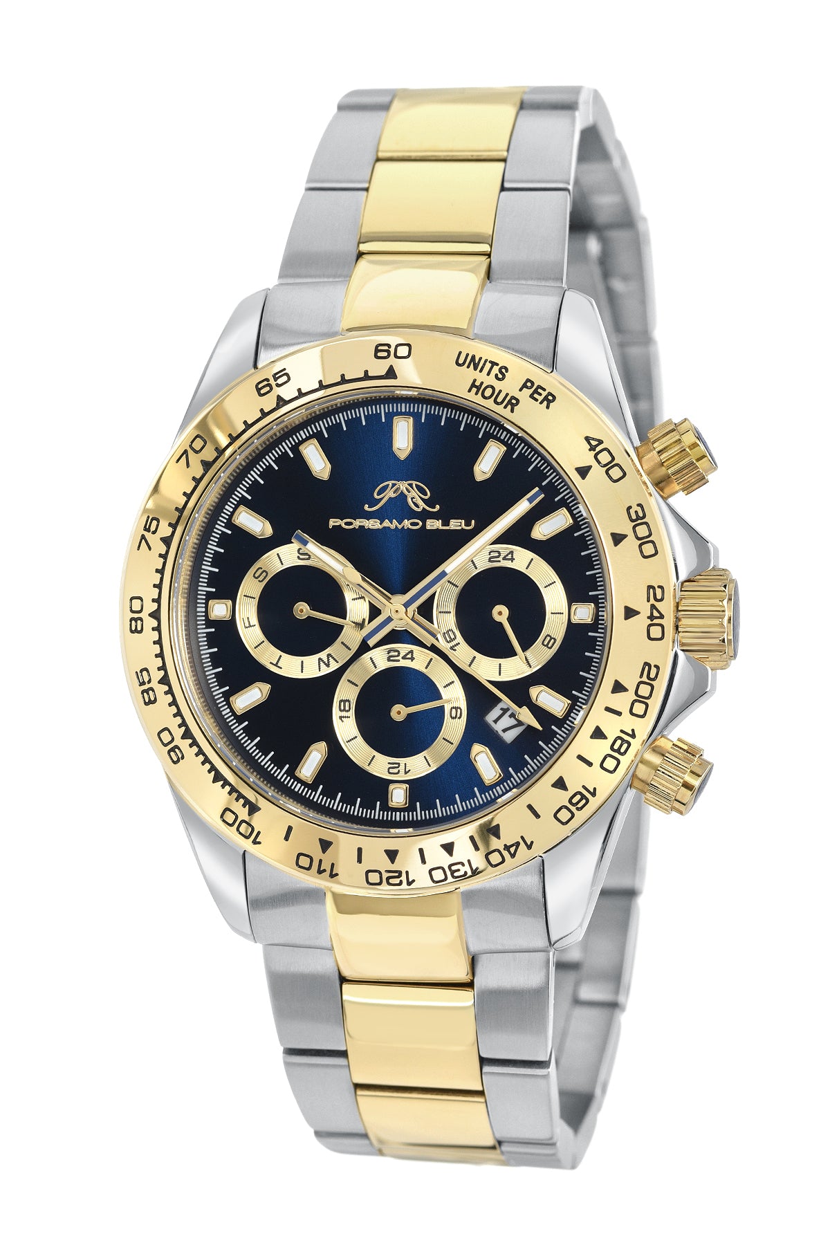 Porsamo Bleu Preston Luxury Multifunction Men's Stainless Steel Watch, Silver, Gold, Blue 1033CPRS