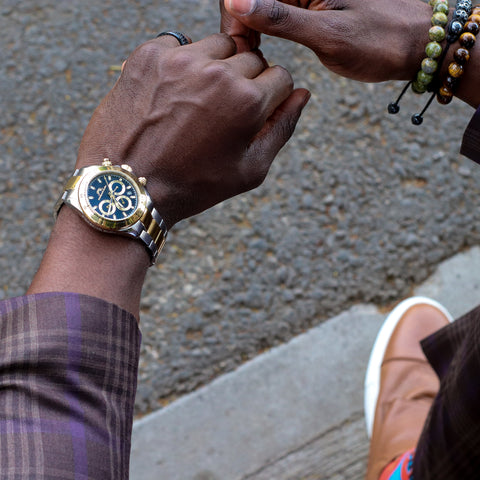 Elegant and striking, the Preston features a sunray dial in blue, housed in a two‑tone round stainless steel case. Paired with a gold stainless steel bracelet, protected by a sapphire‑coated crystal, day and date windows keep you on schedule a 24‑hour subdial provides a second time perspective dual time zone display lets you track another city—an elegant treasure for any occasion.