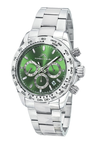 Porsamo Bleu Preston Luxury Multifunction Men's Stainless Steel Watch, Silver, Green 1035APRS