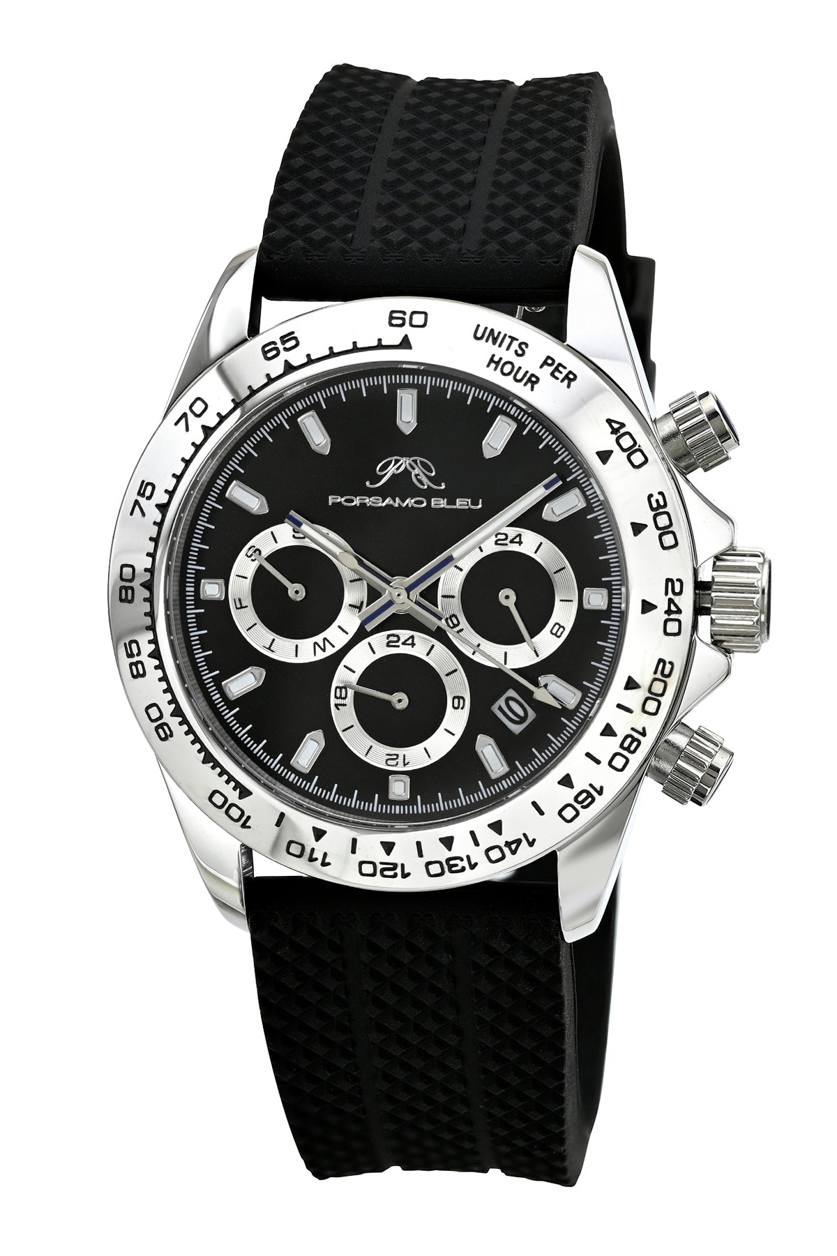 Porsamo Bleu Preston Sport Luxury Multifunction Men's Silicone Watch, Silver And Black 1037APRR