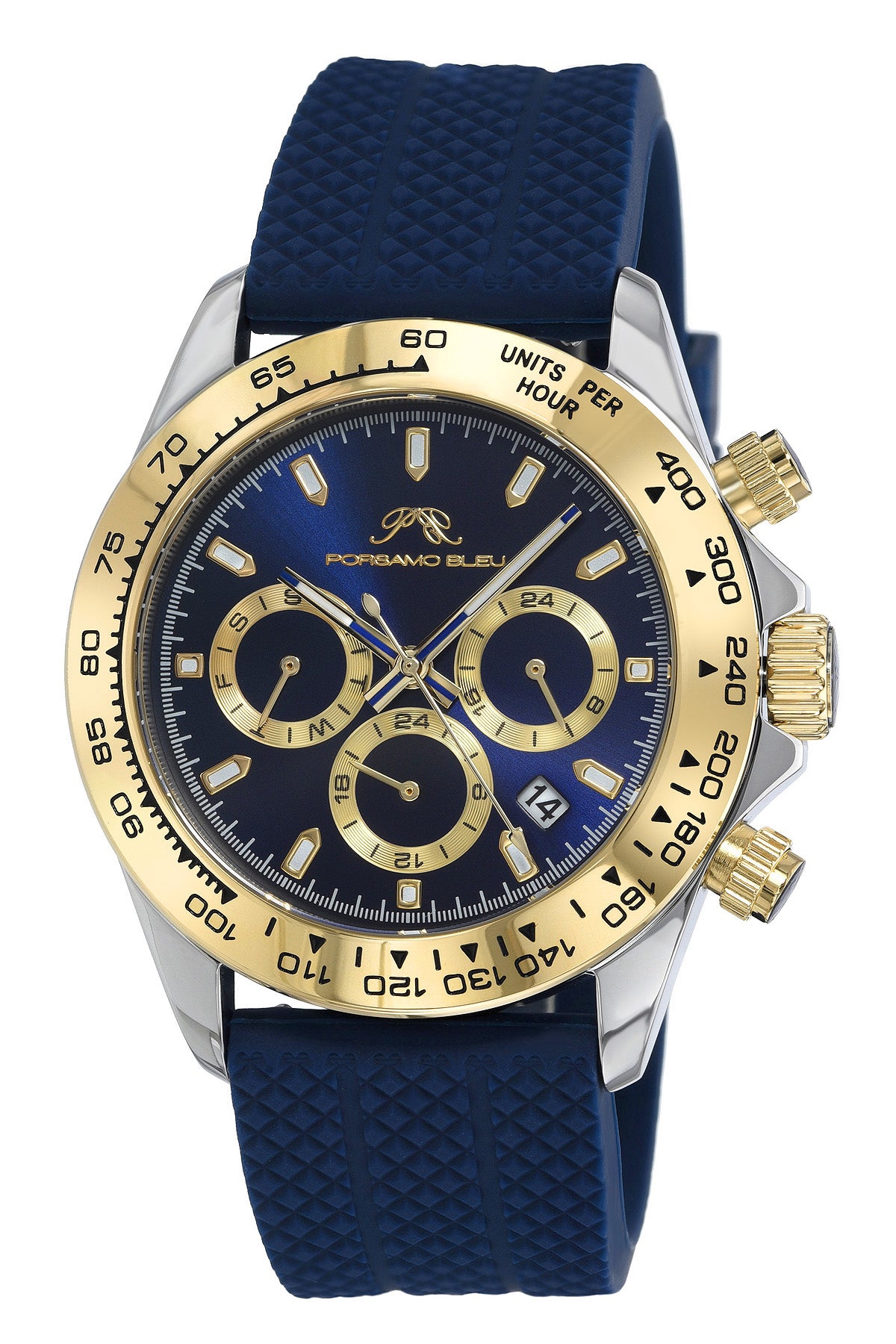 Porsamo Bleu Preston Sport Luxury Multifunction Men's Silicone Watch, Two Tone And Blue 1034CPRR