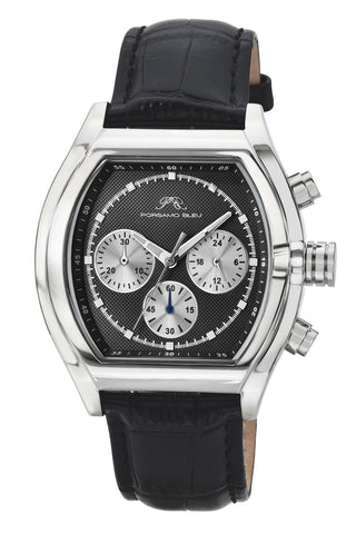 Porsamo Bleu Roman Luxury Men's Genuine Leather Chronograph Watch With Black Dial, Silver, Black, 1292BROL