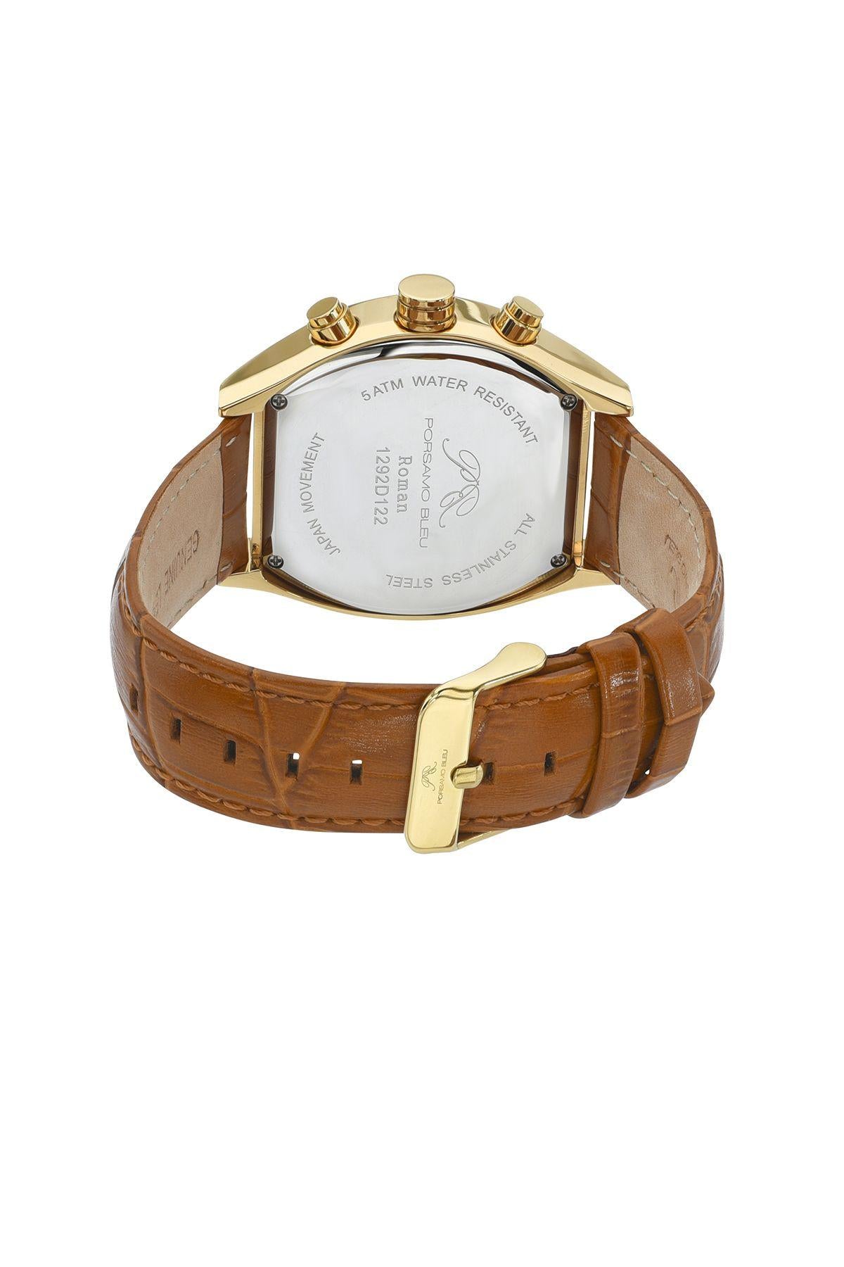 Porsamo Bleu Roman Luxury Men's Genuine Leather Chronograph Watch With White Dial, Gold, Brown, 1292DROL